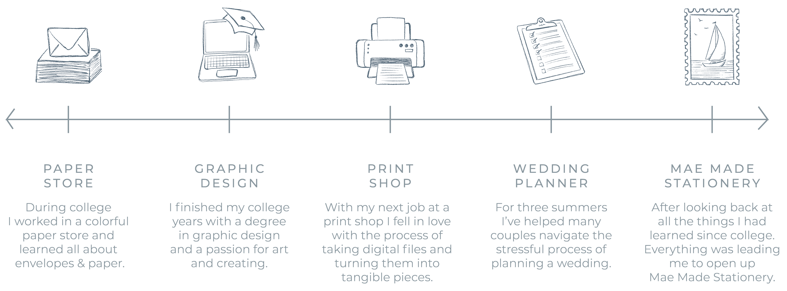 My background in art and weddings was a winding path. From growing up an hour north of Detroit and graduating high school with no idea what I wanted to do. I took life step-by-step and started trying jobs that truly interested me and actually sounded fun. After many jobs I figured out that each step was leading me to creating Mae Made.